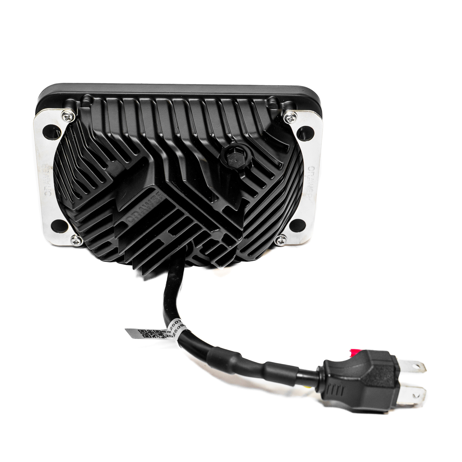 CRAWER har forbedret konstruktionen af køleribber og reflektoroptik for at give bedre varmeafledning og pasform. Den moderne reflektor erstatter tidligere linsetyper, hvilket giver et udseende, der matcher originale halogenlygter, men med markant forbedret lysstyrke og jævn fordeling. Nærlyset forbliver aktivt sammen med fjernlyset, hvilket giver et stabilt og bredt lysbillede – perfekt til både mark- og vejbrug.