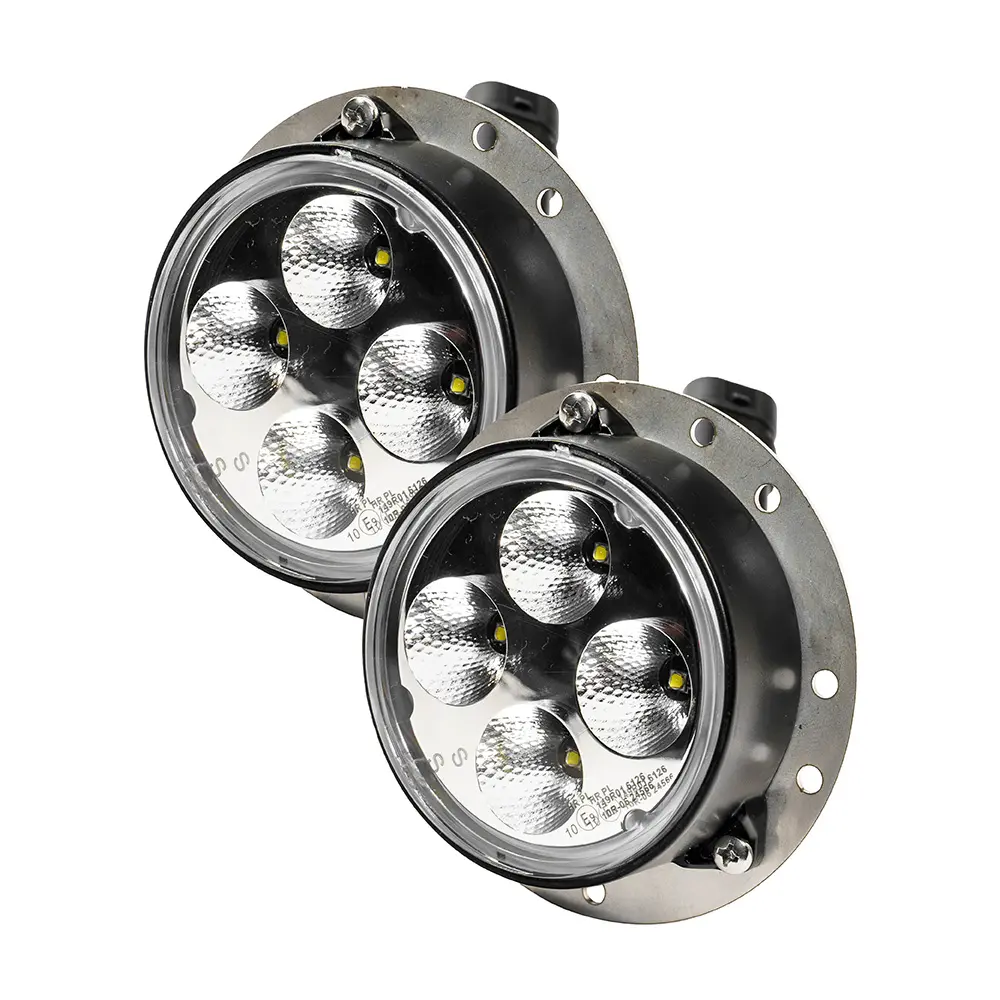 Lampens hus er fremstillet i aluminium med linse og optik i slagfast PC, hvilket giver en stærk og holdbar konstruktion, der modstår vibrationer, støv og vand. IP67-klassificeringen sikrer fuld tæthed og lang levetid, mens ZA4012-beslagene sikrer enkel og præcis montering direkte i de eksisterende lampehuller. Et komplet sæt til professionelle brugere, der ønsker pålidelig belysning og fabriksnær pasform på New Holland-traktorer.