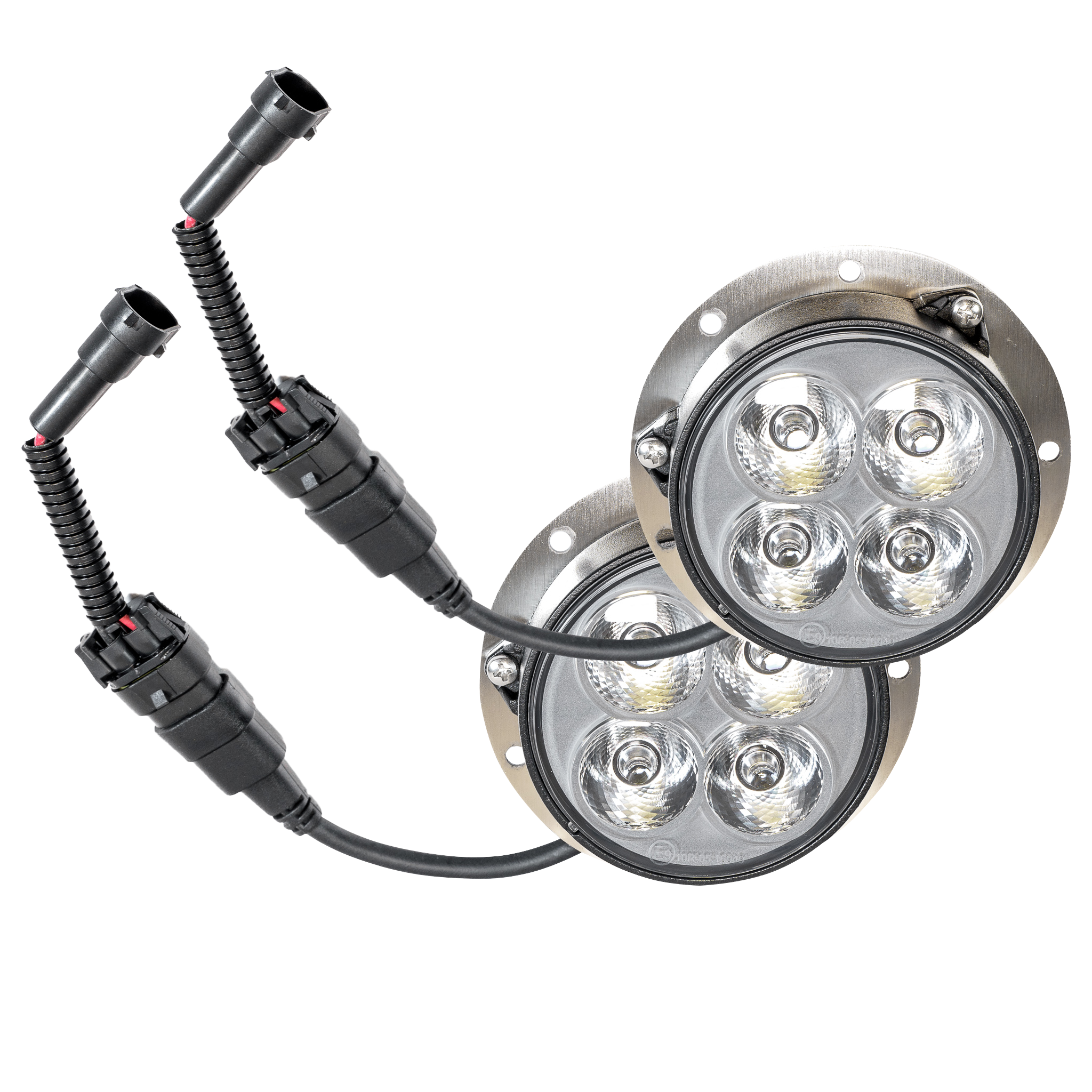 Hver lampe yder 3600 lumen via 4 x 10W Cree XTE LED’er og udsender et koldt hvidt lys (6000K), der sikrer effektivt arbejdslys i selv krævende omgivelser. De er fuldt radiodæmpede og opfylder CISPR klasse 4, hvilket betyder, at du undgår elektrisk støj og kan bruge radio og andet elektronisk udstyr uden forstyrrelser – en funktionalitet på niveau med premium mærker som Hella og Grote.