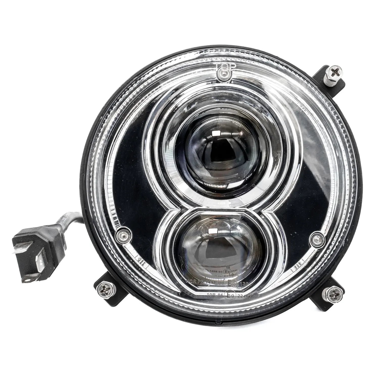 Forlygten er E-mærket i henhold til E9, R112 og R10, så du kan trygt bruge den på offentlig vej. Den er certificeret med et referencenummer på 17,5 og opfylder også R7-kravene. Du får altså en komplet løsning, der både overholder lovgivningen og forbedrer din daglige kørsel og arbejdsrutine.