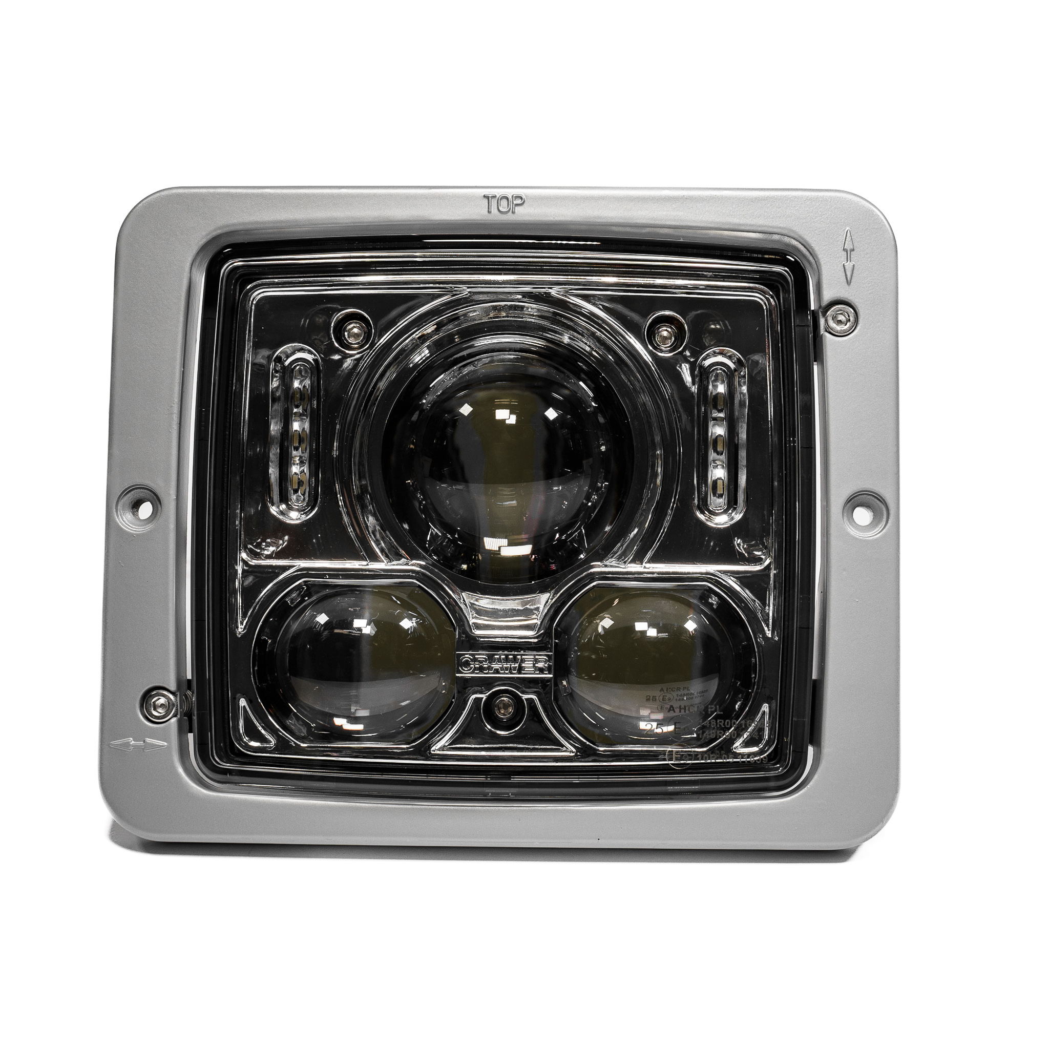 CRAWER LED forlygte sæt grå kvadratisk – 3-i-1 belysning til klassiske traktorer – Dette LED forlygte sæt fra CRAWER kombinerer nærlys, fjernlys og positionslys i én kompakt og tidløs lampe. Den kvadratiske form er identisk med mange ældre originallygter, hvilket gør dem ideel til udskiftning uden ændringer. Med 30 watt nærlys, 55 watt fjernlys og et separat positionslys leverer de effektiv belysning og øget synlighed. Lygterne er E-mærket og derfor godkendt til brug på offentlig vej.