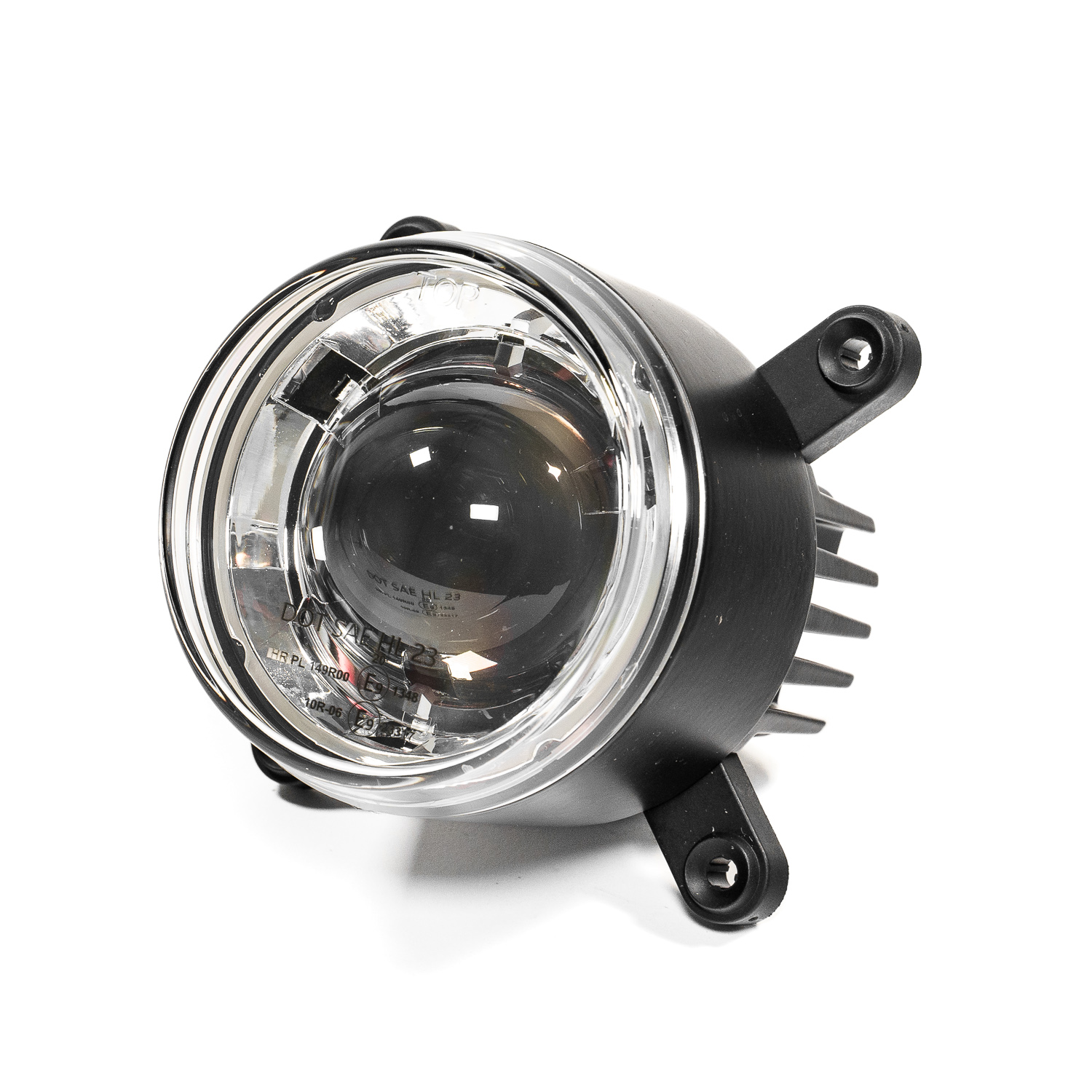 Med et hus i pulverlakeret aluminium og en slagfast PMMA-linse er disse LED-forlygter bygget til langvarig brug – uanset forholdene. De er IP67-certificerede, hvilket betyder at de er helt støv- og vandtætte. Osram LED-chips sikrer et koldt hvidt lys med en farvetemperatur på 6000K. Samtidig er lygterne EMC-radioundertrykt (CISPR klasse 4) og E-mærket i henhold til R10 og R112 – så du kan bruge dem lovligt på offentlig vej.