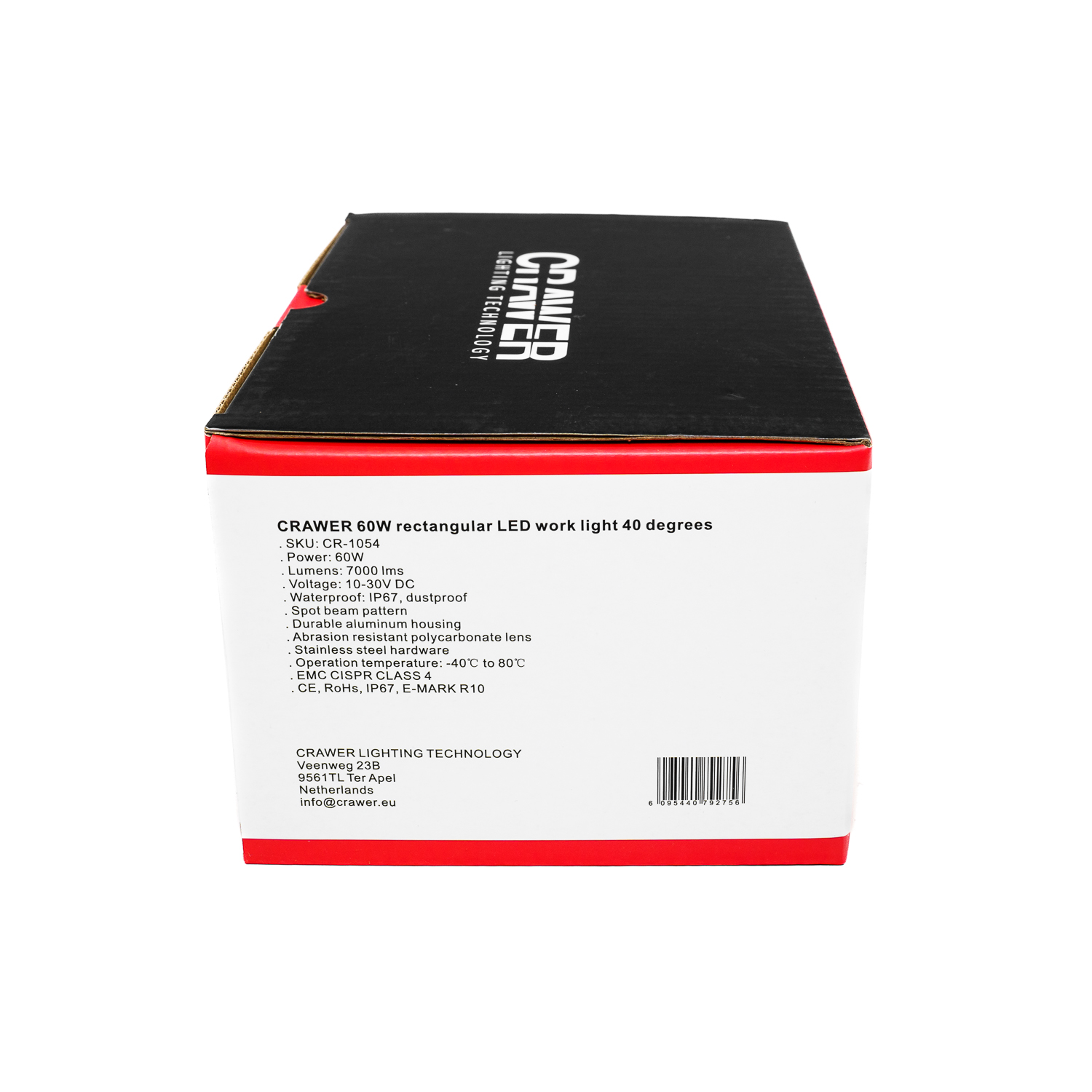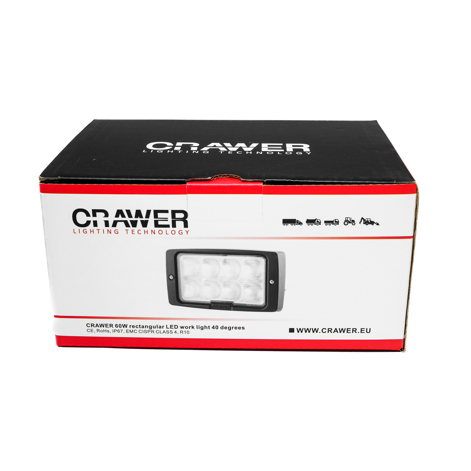 CRAWER LED arbejdslygte 60W – ny generation med forbedret ydeevne – CRAWER CR-1054 er den nye generation af LED arbejdslygter, som erstatter den tidligere CRW4402-model – en af de mest populære lygter til Fendt-traktorer gennem de sidste otte år. Denne opdaterede udgave leverer nu hele 7000 faktiske lumen mod de tidligere 4000 lumen og har en effekt på 60W. Med en lysvinkel på 40° og et koldt hvidt lys på 5500K får du en kraftig og fokuseret belysning, der sikrer optimal arbejdslys under alle forhold. Lygten er designet med både reflektor og linse for maksimal lyseffektivitet og et jævnt lysbillede.