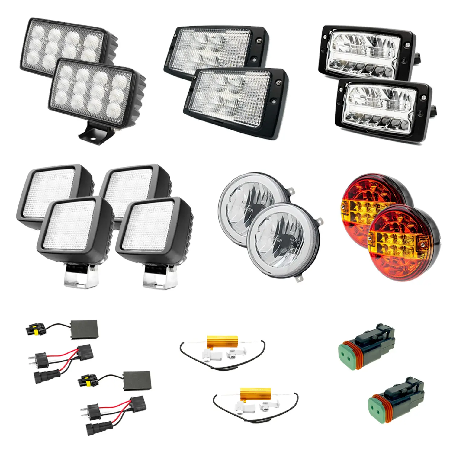 LED kit til Fendt Vario – komplet sæt til optimal opgradering – Med denne komplette LED-pakke fra CRAWER får du en omfattende opgradering af både arbejdsbelysning, forlygter og baglygter på din Fendt traktor. Pakken passer til modellerne Fendt 400 Com 1-3, 700 Com 1-3, 800 Com 2-3 og 900 Com 2. Du får markant forbedret lysstyrke i forhold til halogen, men med samme strømforbrug – hvilket sikrer plug & play-installation uden CanBus-fejl. Flere af lamperne leveres med forinstallerede stik, mens andre kan tilsluttes med medfølgende adaptere og løse stik. Det gør installationen hurtig og fleksibel.