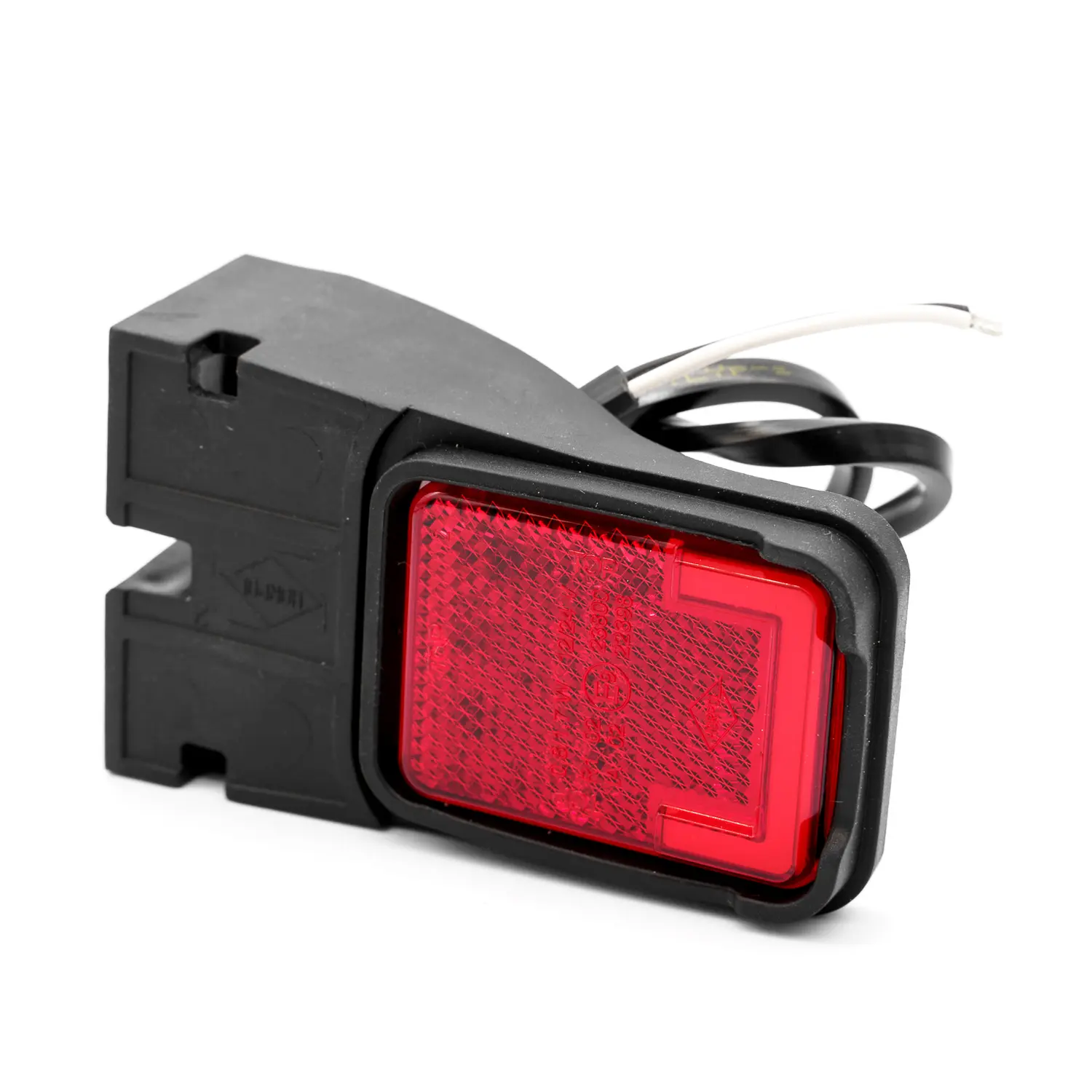 Dette er en vandtæt markeringslygte lygte med et gummihus og en IP68-klassificering, hvilket betyder, at den er støv- og vandafvisende. Lampen leveres med 45 cm 2-polet kabel og har en spænding på 12-24 V. Lampens dimensioner er 100 mm bred (inklusiv holder), 60 mm høj og 38,5 mm dyb, med en boltafstand på 39 mm .