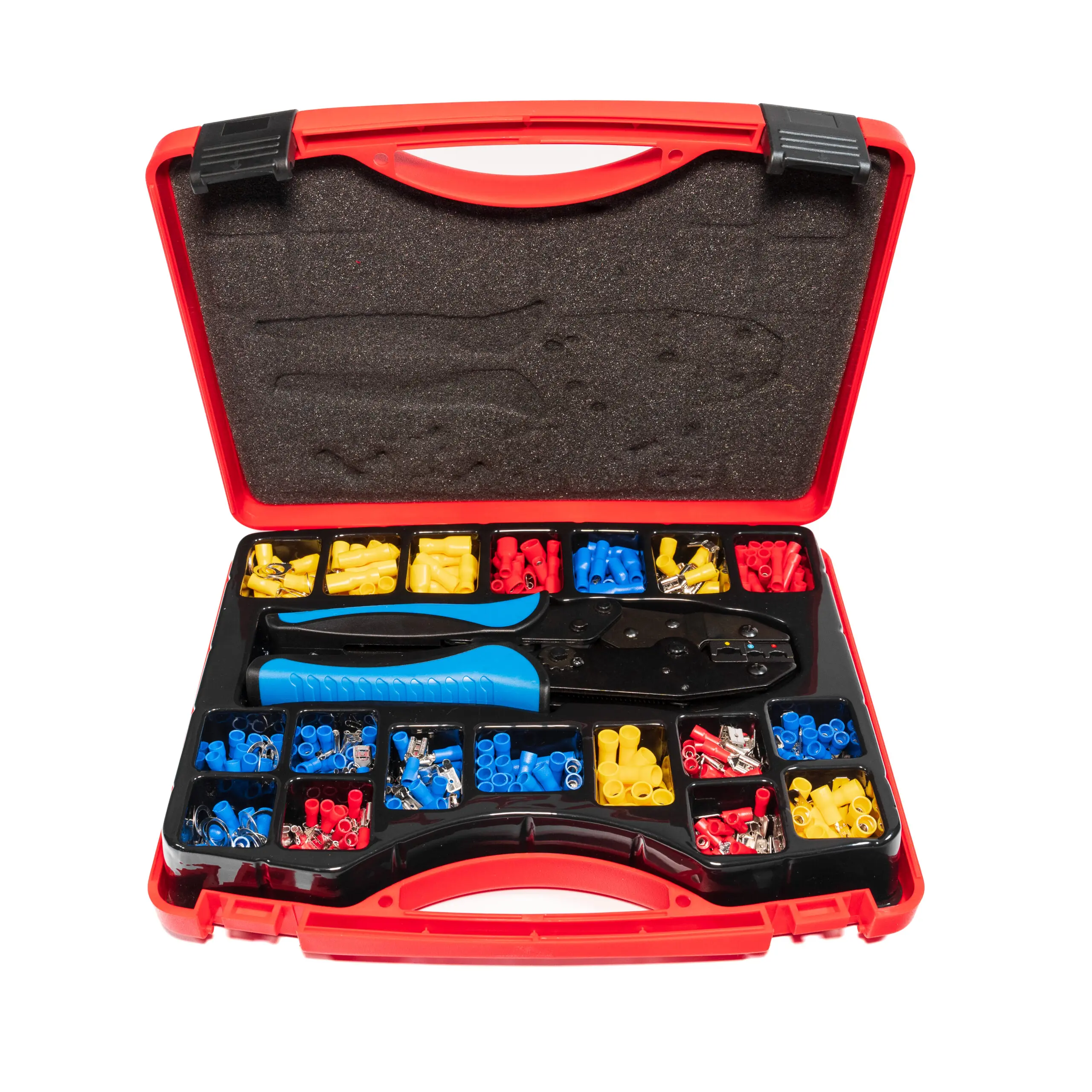 Leveres i en robust hård plastik kasse, denne serie er nem at bære og kan modstå hverdagens stød. Udover kabelsko og krympetang indeholder sættet også kabelbindere og isoleringstape til en professionel finish på alle dine el-projekter.