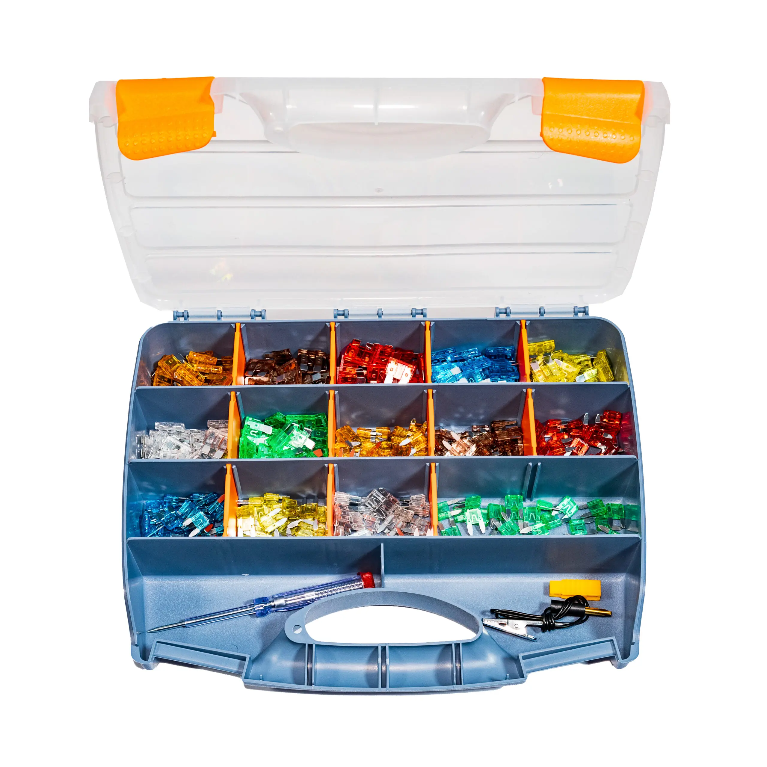 Sikrings-sættet leveres i en robust opbevaringskasse og inkluderer et alsidigt udvalg af både mini- og bilsikringer. Komplet med en praktisk spændingstester til hurtigt at lokalisere defekte sikringer og en tang til ubesværet fjernelse af sikringer, dette sæt giver alt hvad du behøver for en effektiv og problemfri oplevelse.