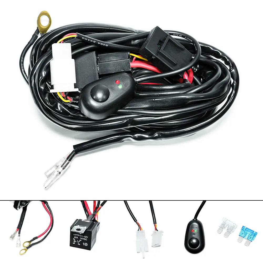 Dette tilslutningssæt/kabelsæt 1 lampe 12V er den forbedrede version af KBLS40A. Produktets tykkere ledninger sikrer, at det er mere sikkert at forbinde LED-barer med højere watt. Dette produkt er meget velegnet til at forbinde forskellig belysning og bruges ofte til at forbinde LED-barer. Derudover medfølger tre sikringer til dette produkt (30A, 25A og 15A). 30A (grøn) er ikke synlig på billederne, fordi den allerede er i sikringsholderen.