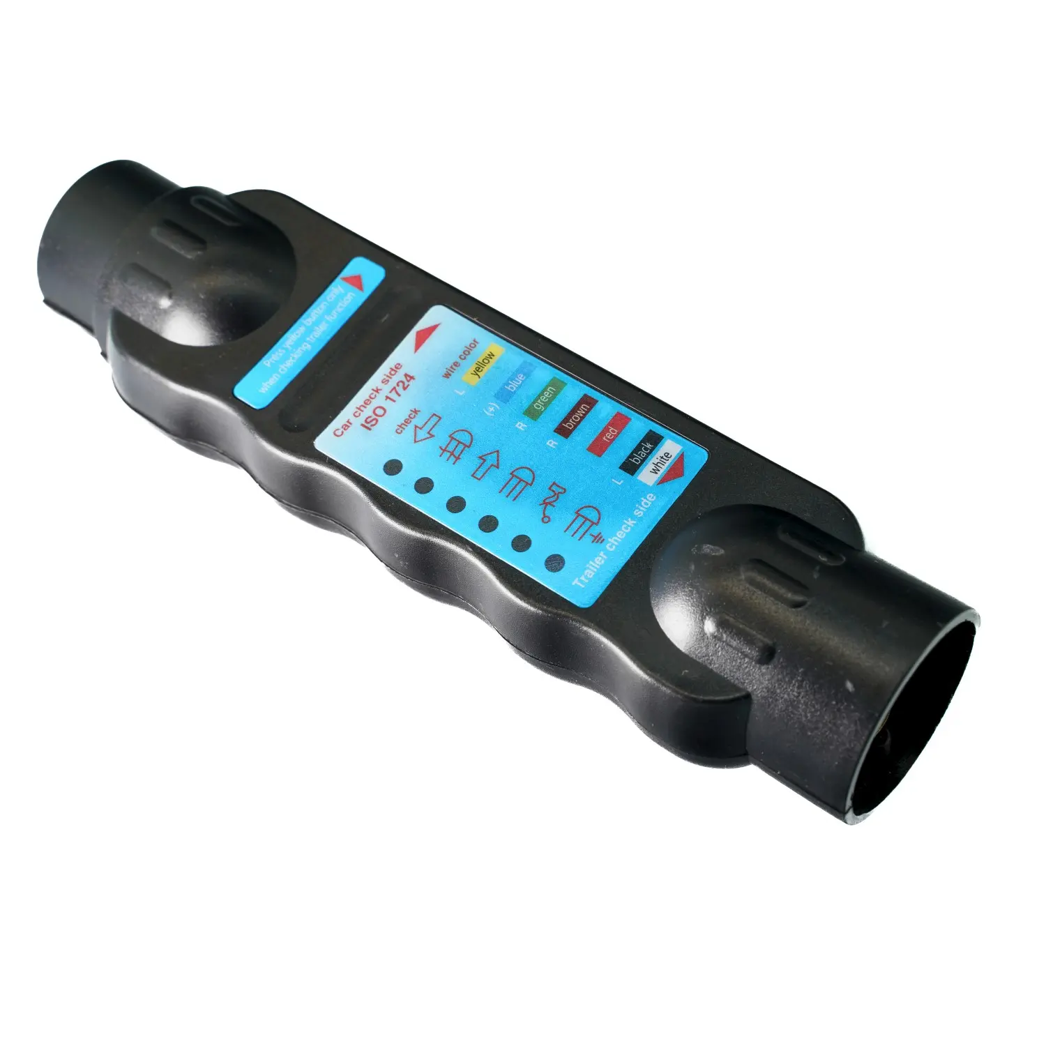 Opdag nemt fejl i dit trailerkabel med vores trailertester 7-polet, der kan bruges til både han- og hun stik. Udstyret med LED lys, kan du nemt anvende tester uden behov for batteri. Testeren kræver kun én 9-volts batteri til at afprøve halogen. Bemærk, at batteriet ikke er inkluderet. Med vores pålidelige tester kan du præcist identificere, hvilken del af kablet der har en fejl, så du hurtigt kan foretage nødvendige reparationer.