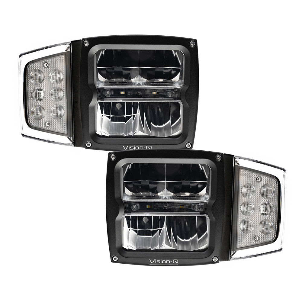 VISION-Q LED-forlygte sæt med alt samlet i én løsning – Leder du efter et komplet LED-forlygte sæt til dit køretøj, som kombinerer funktionalitet, holdbarhed og synlighed? VISION-Q LED-forlygte sæt er et kraftfuld alt-i-en-løsning med fjernlys, nærlys, positionslys, blinklys og endda indbygget forvarmning af linsen – perfekt til vinterforhold. De kan bruges som både højre og venstre forlygte og passer til en lang række professionelle og private køretøjer.